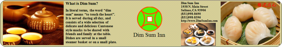 If you want to have Chinese dim sum, how about San Francisco? Nope, it's way too far. Then, what about San Jose? It's still too far. There's great news for Dim Sum lovers now, you can have them here in the city of Salinas. No Matter, Hai Gow(Shrimp Dumpling), or Cha Siu Bao(Barbecue Pork Bun). The first Chinese dim sum restaurant in Monterey county is now open for business in Santa Rita Plaza at 1938 North Main Street, Salinas, CA 93906. Come And Try Them Out!